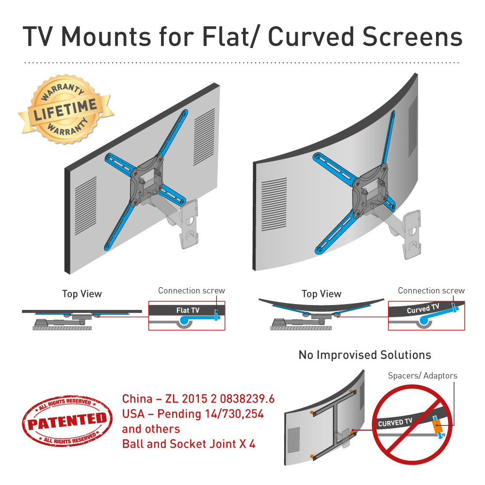 Standard VESA100x100, 100x200, 200x100, 200x200, 300x300, 300x400, 400x300, 400x400 mm