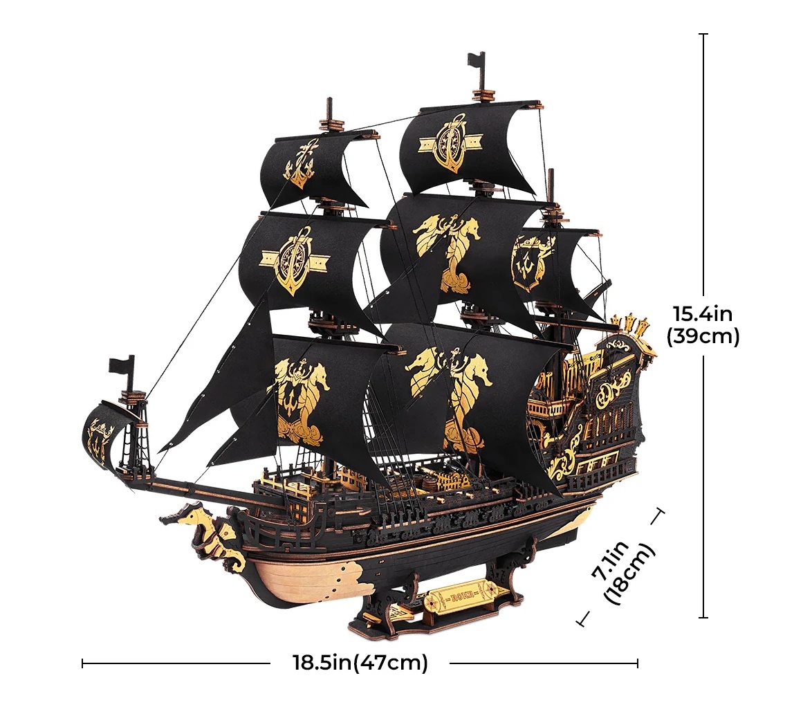 Cufundați-vă în epoca bătăliilor navale și a marilor descoperiri geografice cu modelul de navă ROKR Seahorse Barque - o navă de război rafinată cu trei catarge în stil baroc. Asamblată din 603 piese de lemn, acest model vă va transporta în epoca de aur a navigației - din secolele al XVI-lea până în al XVIII-lea.