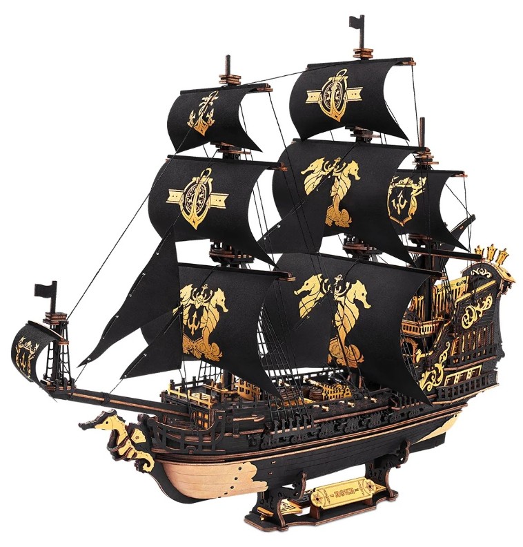 Nava Seahorse Barque este mai mult decât un simplu set de construcție; este o adevărată aventură pentru cei care iubesc temele maritime, navele istorice și preocupările intelectuale. Vopseaua sa neagră și aurie, tunurile strălucitoare, pupa gotică, sculpturile complicate și impresionanta figurină de cal de mare fac din acest model o adevărată operă de artă. Nava asamblată măsoară 470 x 180 x 390 mm.