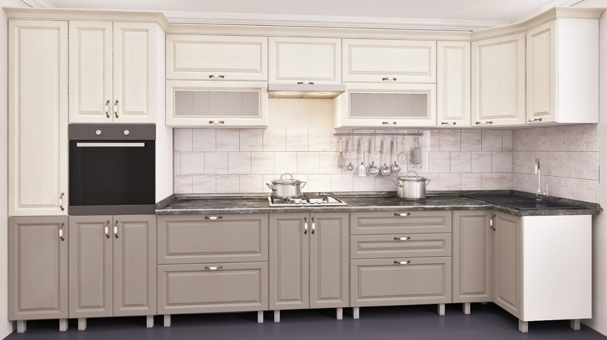 Bucătărie Bafimob Corner MDF 4.1x0.9m Eco +ball closer Alebastr/Dub Konkordiya