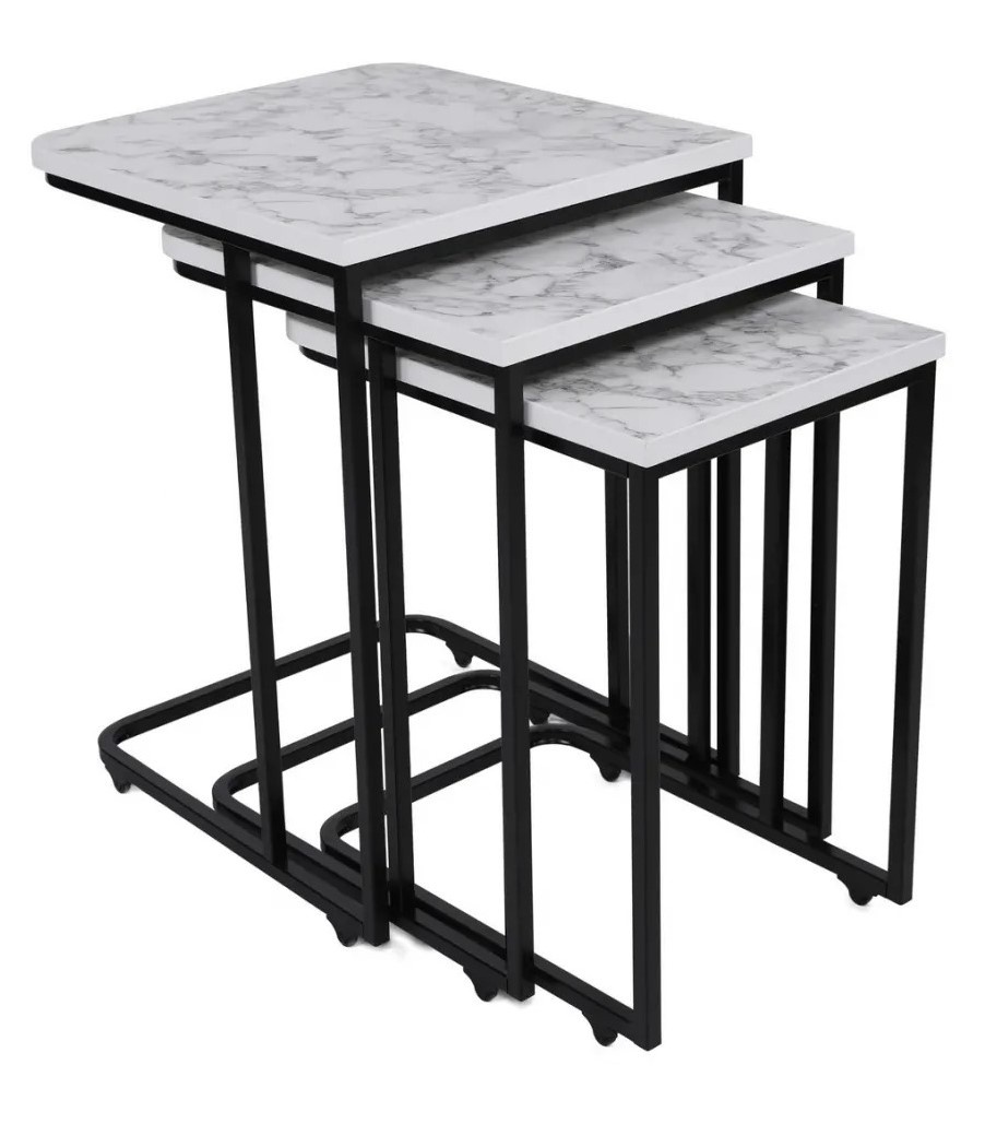 Indiferent dacă locuiți într-un apartament compact sau într-un living spațios, setul oferă flexibilitatea necesară. Așezați mesele ca un ansamblu unitar sau distribuiți-le în încăpere pentru a crea mai multe zone de interes. Alegerea vă aparține.