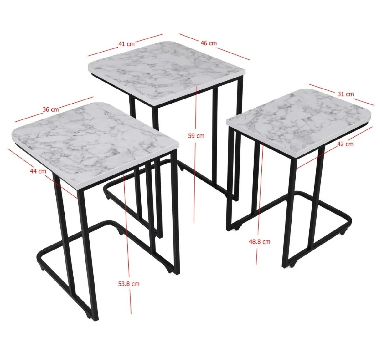 Specificații suplimentarea doua masă - înălțime 53,8 cm, lățime 36 cm, adâncime 44 cm, a treia masă - înălțime 48,8 cm, lățime 31 cm, adâncime 41 cm
