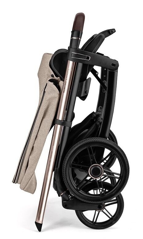 Șasiul amortizor cu roți mari cu rulmenți cu bile ușor de împins este potrivit pentru plimbări pe orice teren. Manevrabil și incredibil de compact (51,5 cm lățime), va trece chiar și în cele mai înguste locuri. Roțile din față au un diametru de 196 mm, cele din spate - 260 mm. Șasiul se extinde și se pliază cu o singură mână. În același timp, mâinile tale rămân mereu curate, deoarece mânerul căruciorului nu atinge pământul atunci când este pliat. Mânerul cu reglare telescopică a înălțimii (4 poziții) este decorat cu inserții din piele artificială. Un coș spațios pentru lucruri cu fund întărit și un contur din material reflectorizant.