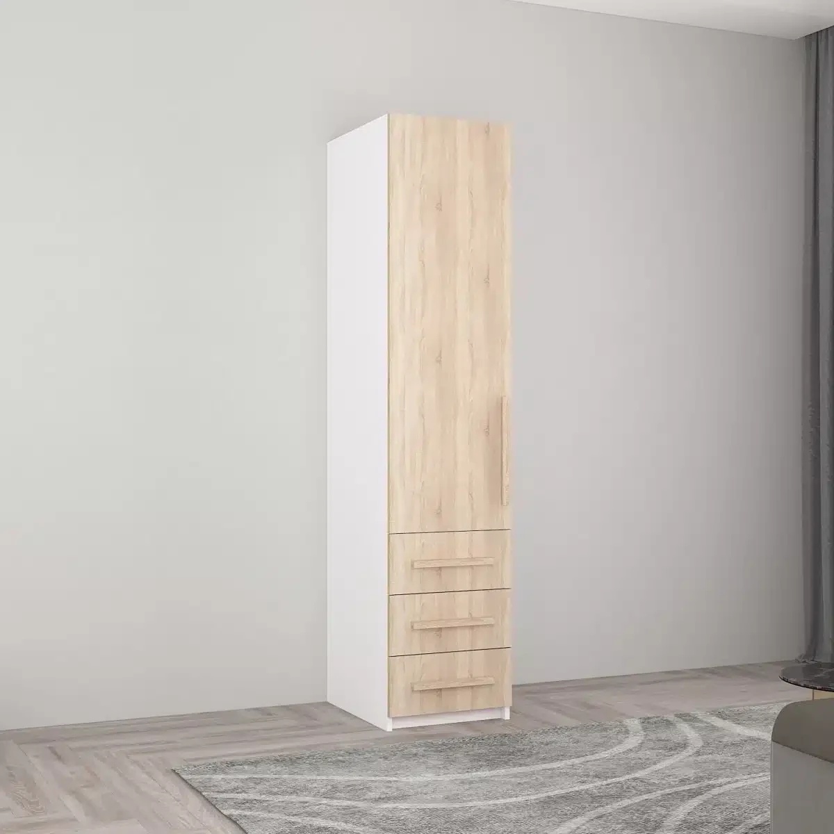Dulap Mobildor-Lux Smart-Home 0.40x0.56x2.0H m cu polițe și sertare Alb/Sonoma