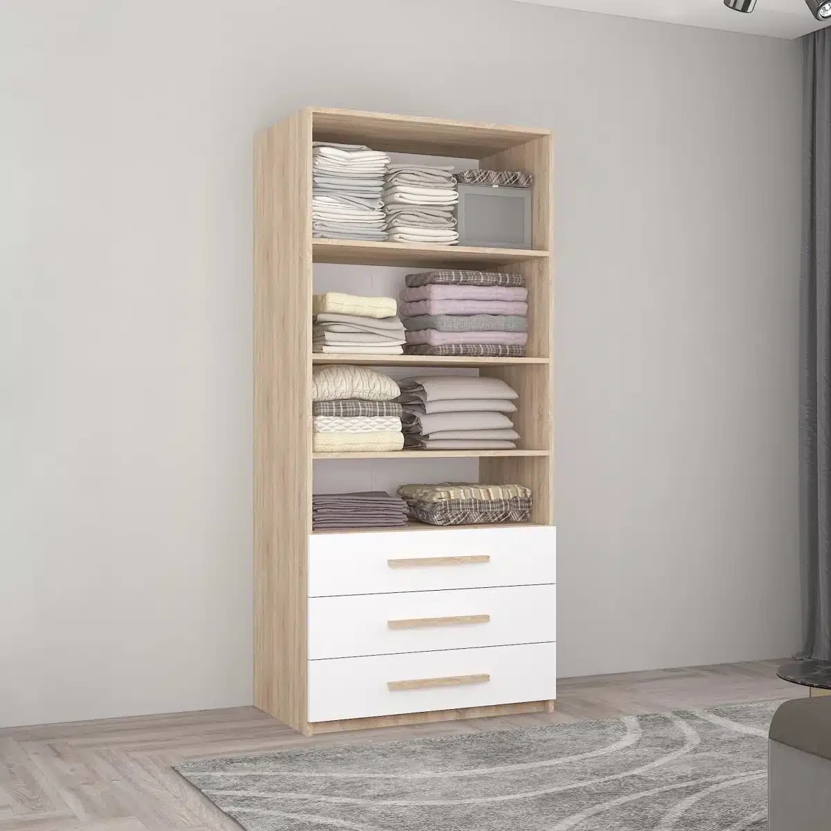 Dulap Mobildor-Lux Smart-Home 1x0.56x2.0H m cu polițe și sertare Sonoma/Alb
