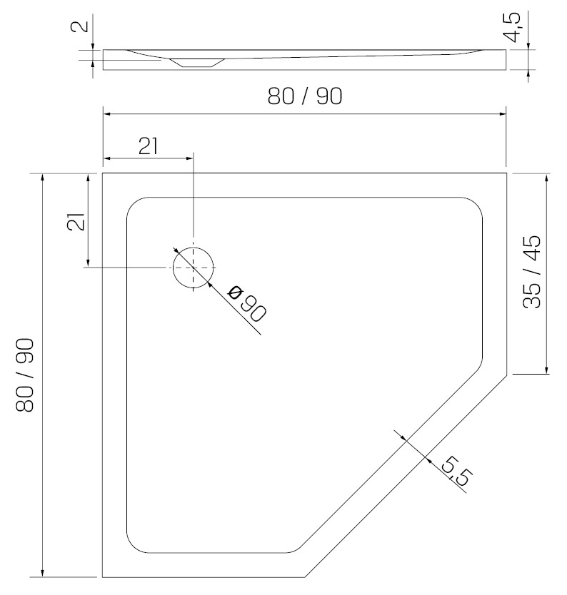 Cadița de duș New Trendy Mild Stone B-0582 90x90x4.5 (17223)