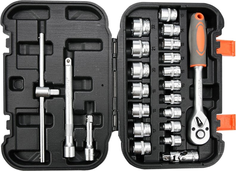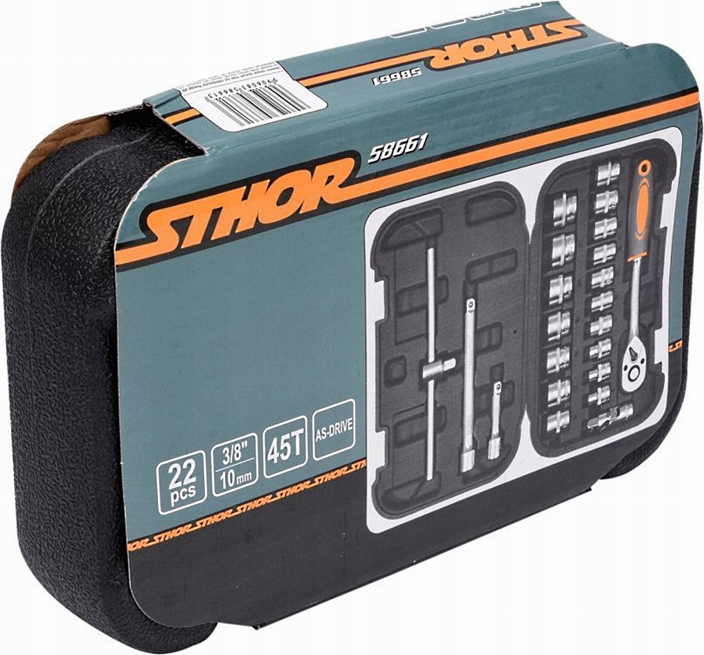 Setul de scule STHOR este compus din 22 de elemente plasate intr-o cutie de plastic convenabila. Instrumentele au fost selectate precis si realizate din materiale care asigura fiabilitatea acestora. Setul include o gama completa de prize 3/8 ″, extensii, o articulatie cardanica si un clichet cu 45 de dinti. Aceasta configuratie face ca setul sa fie adecvat pentru lucrari minore de asamblare, reparatii mecanice si multe alte activitati de uz casnic sau de atelier.