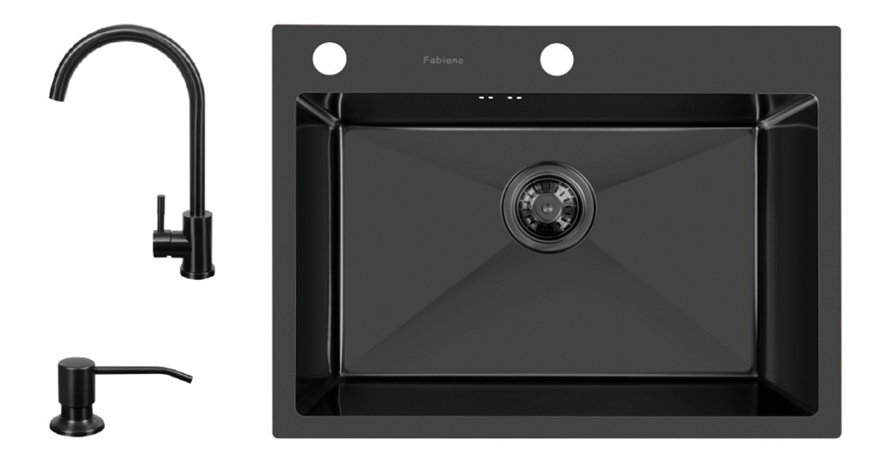 Chiuvetă de bucătărie cu baterie și dozator Fabiano 60x45 Black