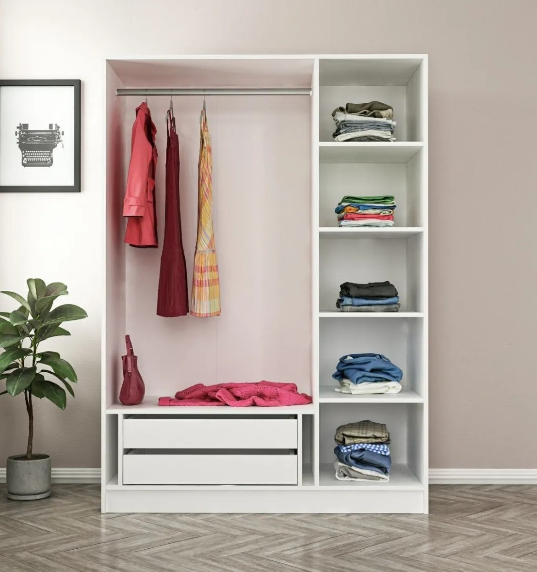 Dulapul este realizat din panouri de particule de lemn acoperite cu melamină 100%, oferind rezistență și stabilitate în utilizarea zilnică. Grosimea de 18 mm asigură o structură solidă, concepută pentru a rămâne funcțională în timp.