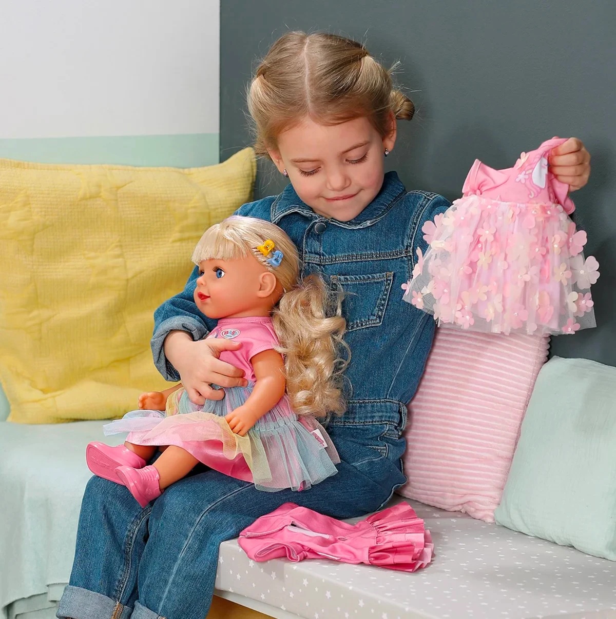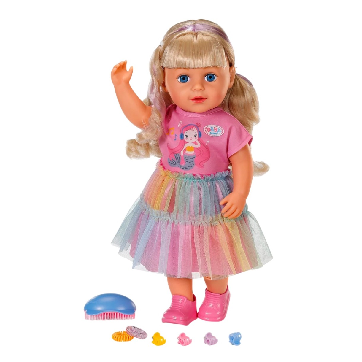 Faceți cunoștință cu Carla, eroina plină de viață a noului univers Baby Born! Această păpușă veselă și stilată adoră dansul și aduce mereu zâmbetul pe fața copiilor. Cu părul lung și blond , care poate fi pieptănat și aranjat în diverse coafuri, Carla transformă joaca într-o experiență creativă și distractivă.