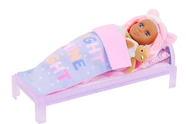 Acest set de mobilier și dormitor pentru păpuși este compatibil cu toate jucăriile Glitter Girls și cu majoritatea păpușilor de 14".