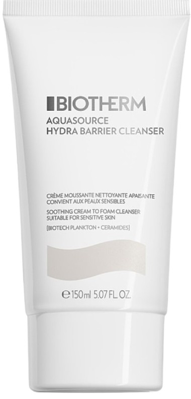 Biotherm Aquasource Hydra Barrière Cleanser – cremă-spumă de curățare pentru față cu efect calmant.