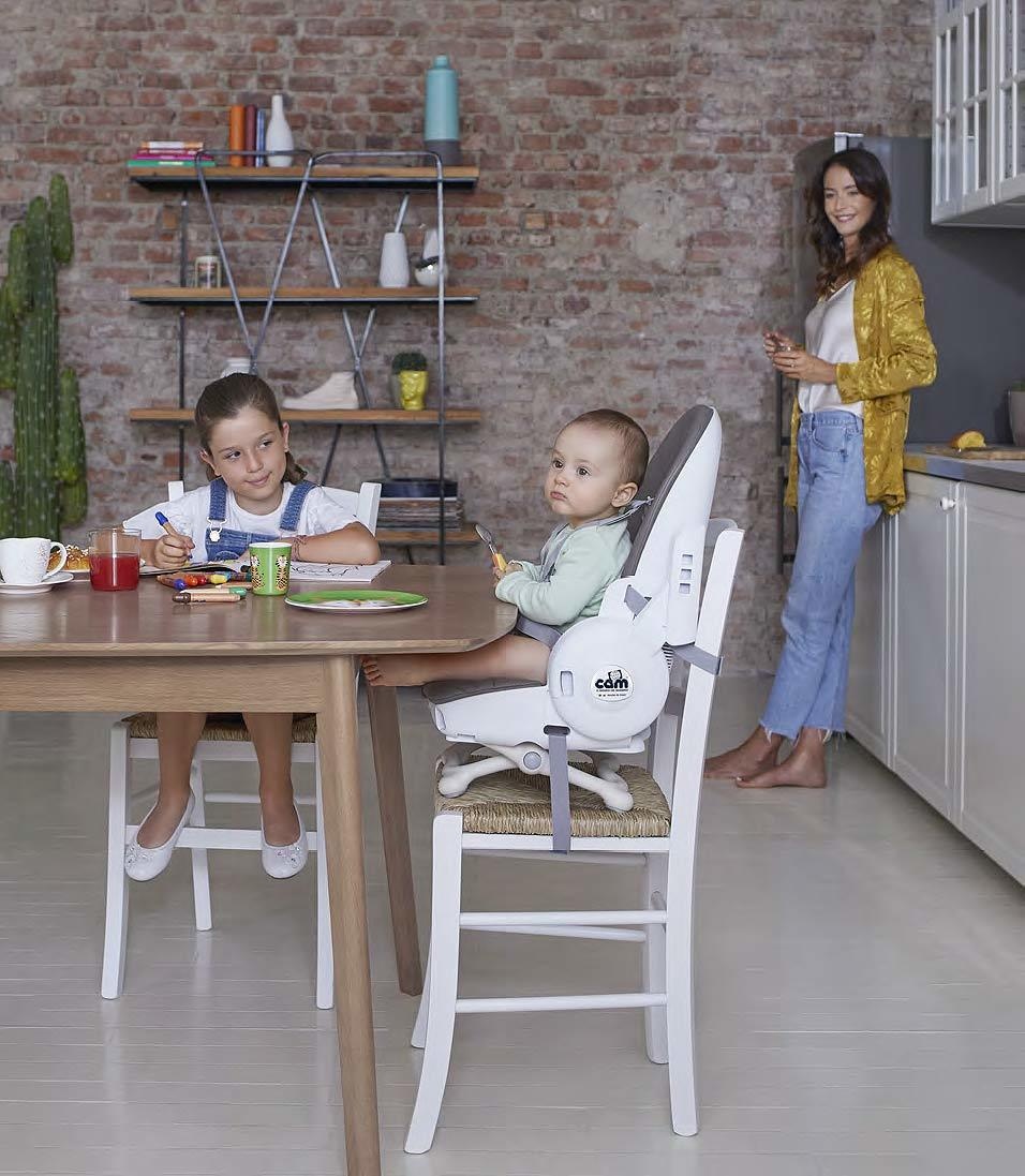 Scaunul Original 4-în-1 crește odată cu copilul dumneavoastră: poate fi folosit ca pat pentru nou-născuți, ca scaun de călătorie, pentru hrănirea copiilor mici acasă și în călătorie și ca scaun pentru copii fără traylă pentru copiii mai mari care doresc să stea la o masă cu de către părinții lor. Fabricat în Italia cu caracteristici evolutive.