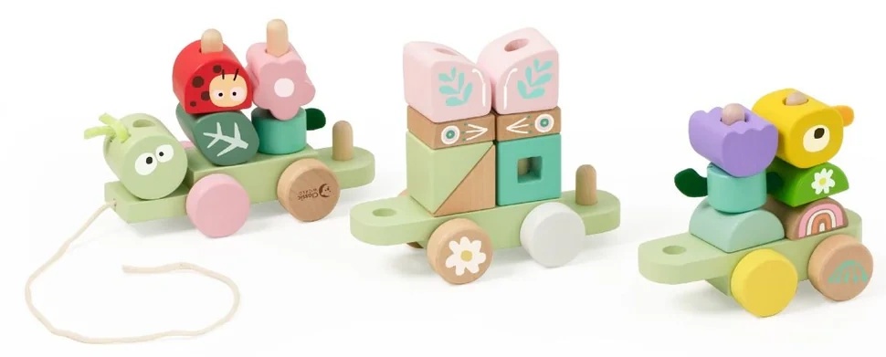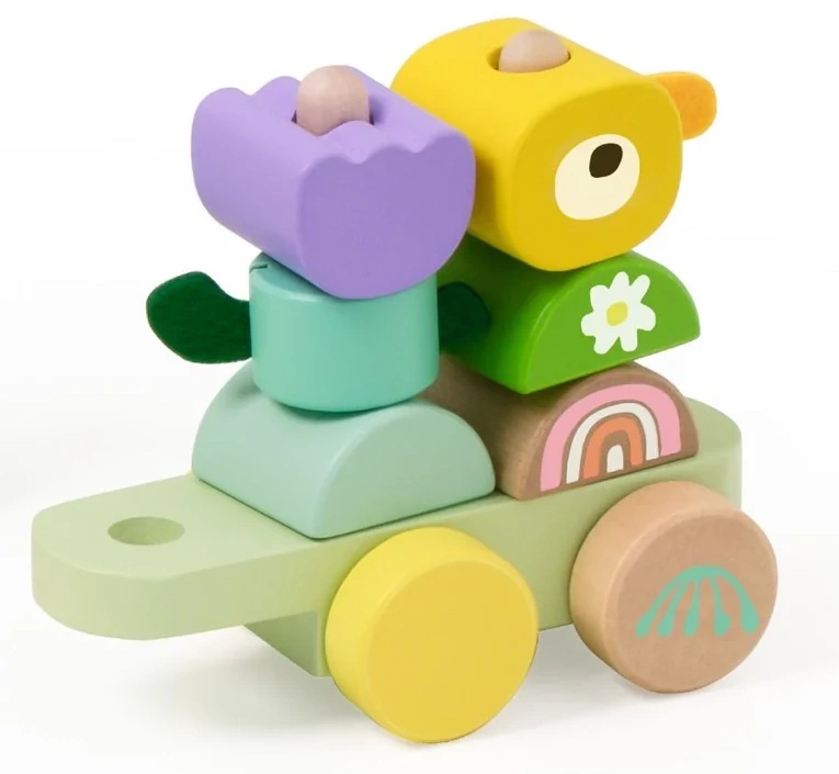 Setul Jungle Pull include un tractor cu omidă, flori, păsări, fluturi, frunze și diverse blocuri de construcție. Copiii pot combina și potrivi aceste componente în mod liber, creând o experiență captivantă și plină de viață, cu tematică junglă. Tema junglei introduce copiii în lumea naturală, învățându-i despre animale, plante și insecte, stimulând interesul pentru natură și conștientizarea mediului. Oferă o perioadă de joacă educativă și distractivă pentru copii în timp ce trag și explorează.