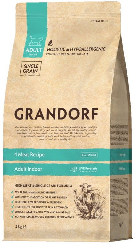 Hrană uscată pentru pisici Grandorf Adult Indoor 4 Meat 2kg