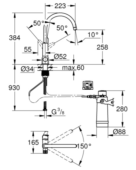 Baterie bucătărie Grohe Blue Pure BauCurve (30385000)