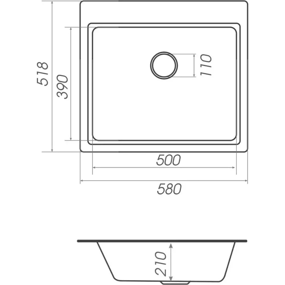Adâncime cuvă210 mm