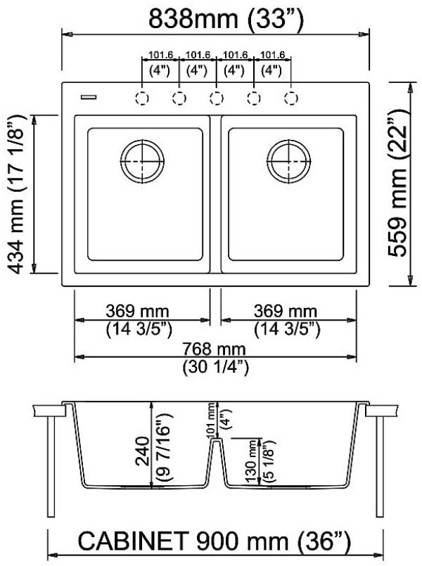 Dimensiuni cuvă auxiliară434х369 mm