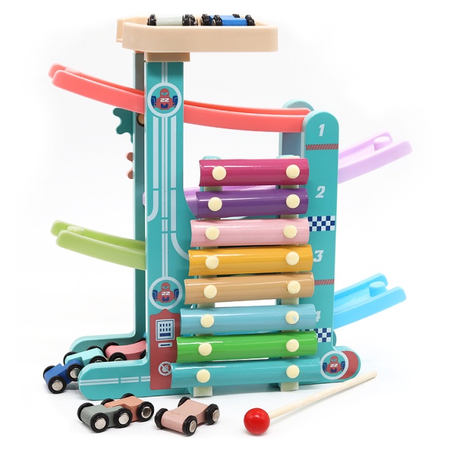 Pistă de curse este are drum din lemn cu 4 niveluri. Fiecare nivel este înclinat, astfel încât mașinile speciale și alte obiecte mici alunecă cu ușurință pe drum.