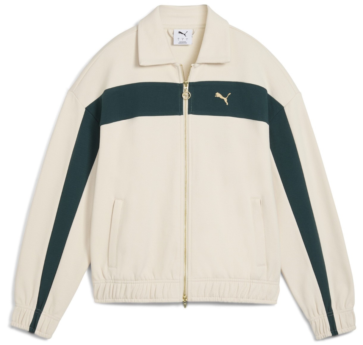 Detaliile caracteristice subliniază caracterul modelului: o inserție frontală contrastantă T7 face trimitere la stilul istoric al liniei, iar logo-ul PUMA Cat brodat pe piept adaugă un accent elegant al mărcii. Buzunarele laterale practice completează designul.