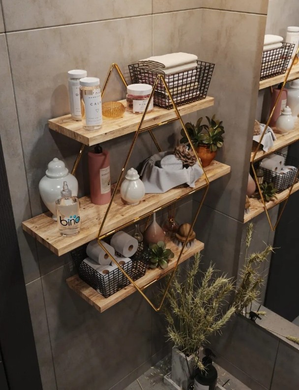 Raft de perete Trendy Prizma Pine Atlantic/Gold 60x60x16cm GTR005582