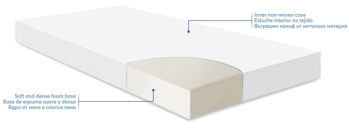 • Moale și cu susținere bună - Acoperită cu material colorat din bumbac și umplută cu spumă moale și densă, oferind combinația ideală de confort și susținere pentru bebelușii de la 0+ luni.