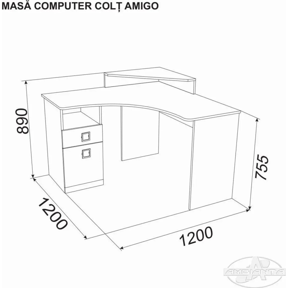 Masa de birou Ambianta Amigo Colt Artisan/Crem