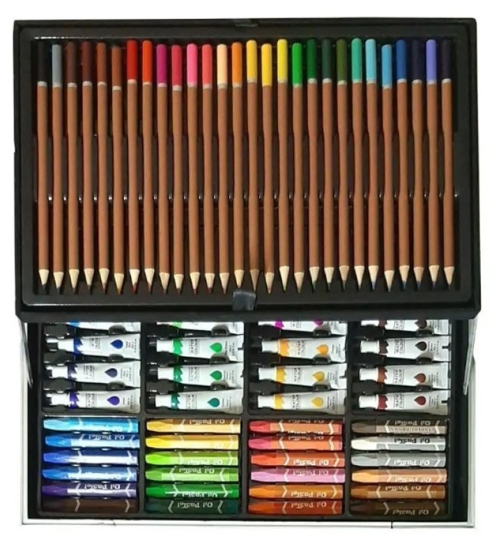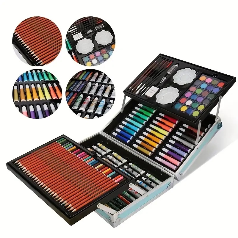 Marfă depreciată! Set de desen pentru copii 4Play Creativity Blue 145pcs