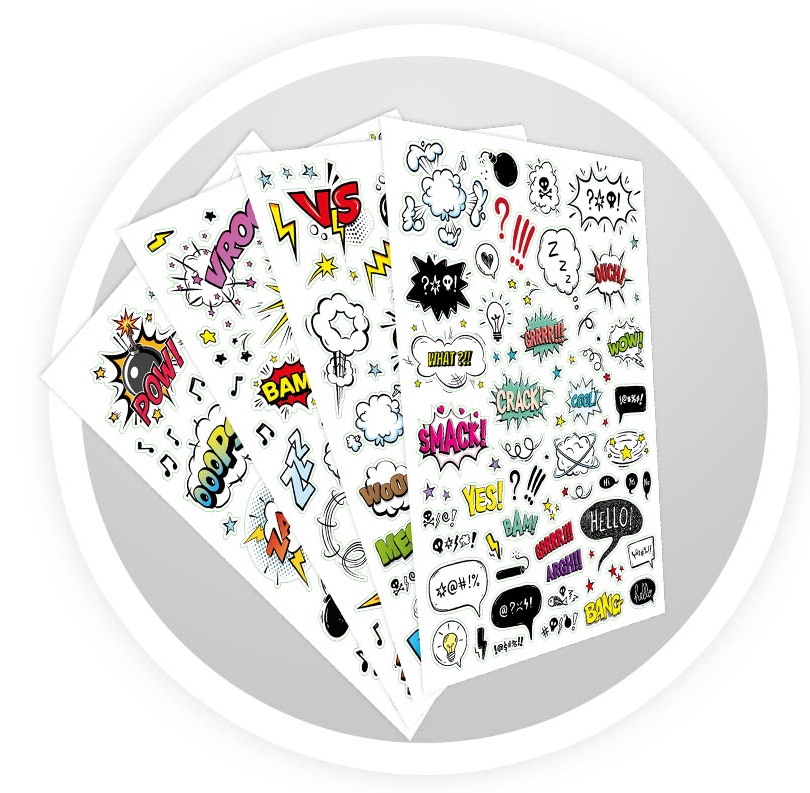 In set1 bloc mic de desen Flipbook, 30 coli A5 (21×14,8 cm), 100 coli (11,4×6,5 cm), 1 clema metalica, 2 seturi de sabloane, 4 coli de abtibilduri-autocolante, 1 penar, 1 foaie cu instructiuni