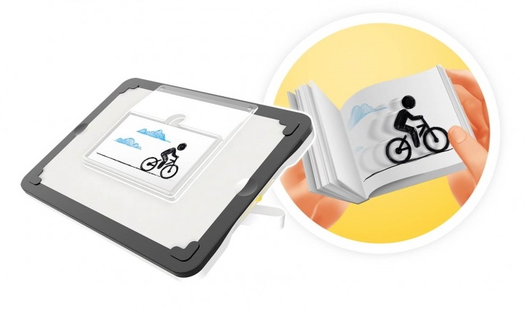 Tot cu ajutorul acestei minunate tablete, copiii pot crea propriul lor Flipbook- brosura cu o serie de desene care se schimba treptat si foarte repede de la o imagine la alta, astfel incat atunci cand paginile sunt vizualizate in succesiune rapida, imaginile par sa se anime prin simularea miscarii.