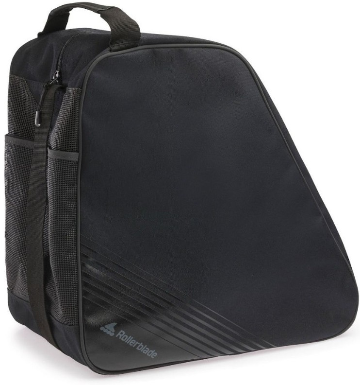 Rollerblade Skate Bag este o geantă funcțională pentru transportul patinelor și a altor articole esențiale. Fabricat din nailon durabil, de culoare neagră, cu un logo elegant. Are o formă clasică triunghiulară, destul de încăpătoare, potrivită pentru role de orice dimensiune. Echipat cu un fund dur și găuri de ventilație pe partea din spate. Există un mic buzunar cu fermoar în interior pentru a vă depozita telefonul, cheile, portofelul etc. Vine cu o curea de umăr detașabilă care poate fi ajustată pentru a se potrivi nevoilor dumneavoastră.