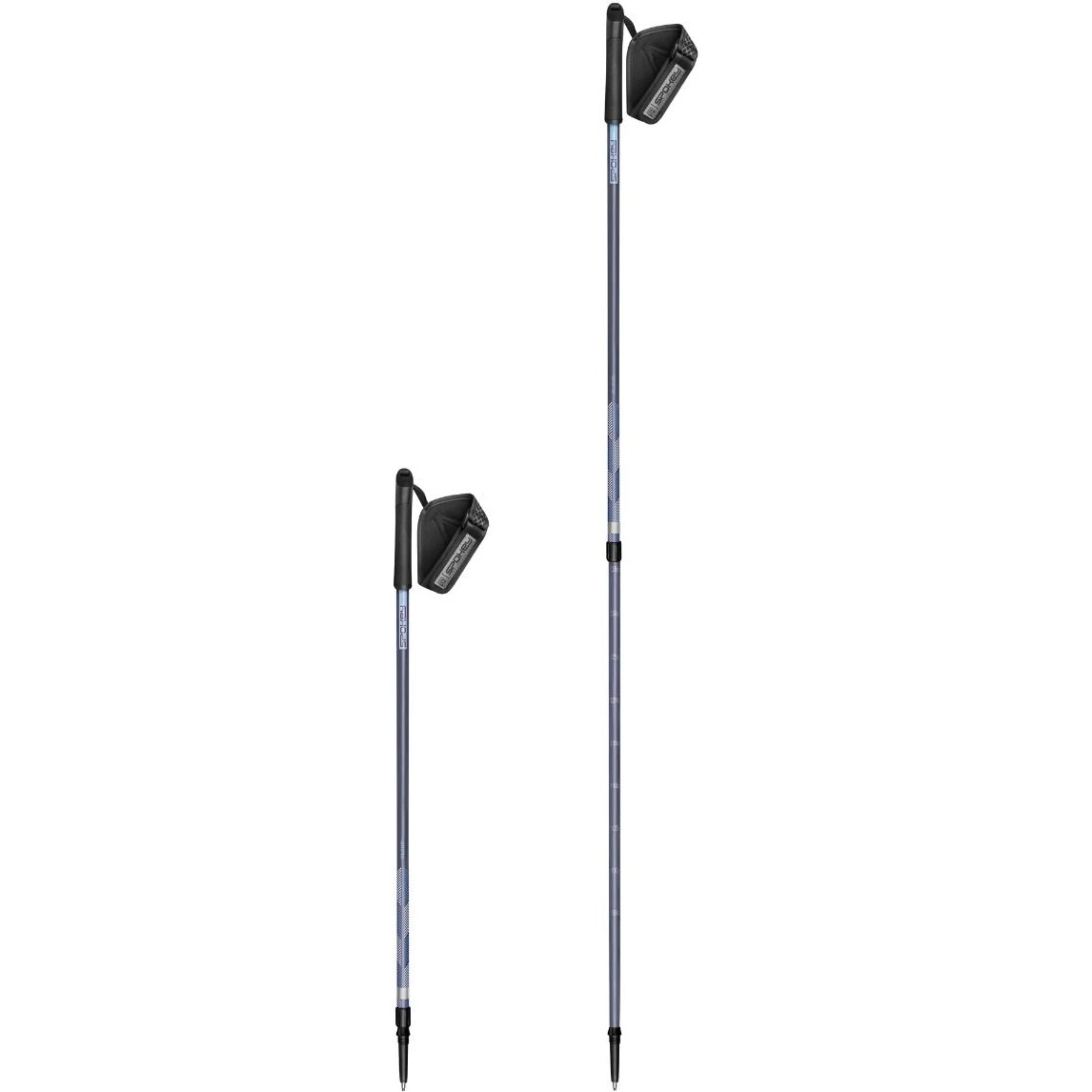 Construcția din două segmente, cu reglare a lungimii între 95 și 135 cm, permite ajustarea ușoară a bețelor în funcție de înălțimea utilizatorului. Atunci când sunt pliate la dimensiunea minimă, ocupă foarte puțin spațiu, fiind ușor de transportat și depozitat.