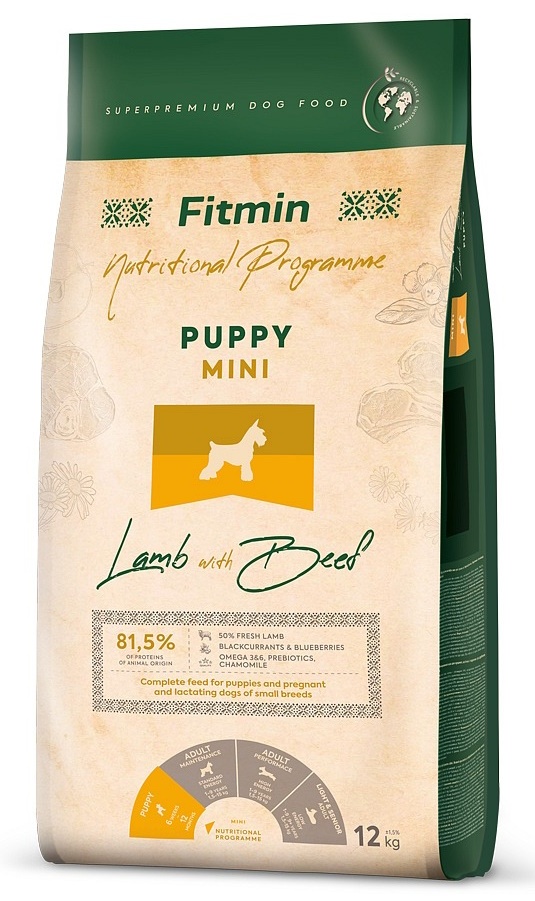 Hrană uscată pentru câini Fitmin Puppy Mini Lamb & Beef 12kg