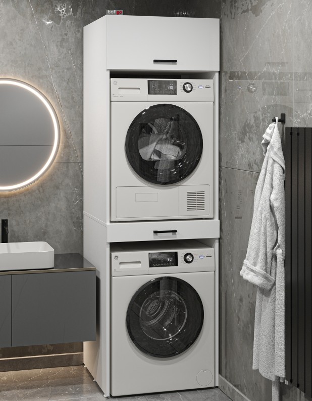 Etajerapentru mașina de spălat și uscător Bofigo 12-08-01 este realizat din PAL de înaltă calitate, cu grosimea de 18 mm, oferind rezistență și stabilitate în utilizarea zilnică. Partea inferioară a raftului este destinată instalării mașinii de spălat, iar nivelul superior permite amplasarea comodă a uscătorului, economisind spațiu și creând o zonă verticală practică de organizare. Construcția este proiectată să suporte greutăți mari și să rămână stabilă chiar și în timpul funcționării aparatelor. Produsul se livrează demontat și include toate accesoriile necesare și instrucțiunile pentru o asamblare rapidă. Este o soluție funcțională ce permite utilizarea eficientă a spațiului și organizarea corectă a electrocasnicelor.