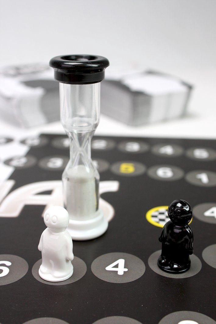 Jocul contine: tabla de joc, 400 de carti de joc cu 2400 de notiuni, clepsidra, 2 pioni, regulament de joc.
