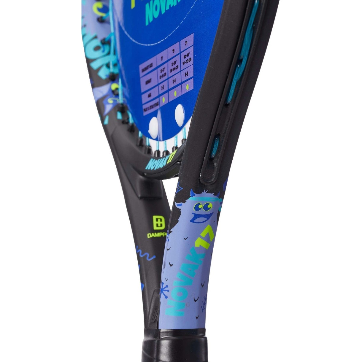 Rama este realizată din aluminiu rezistent, cu răspuns moale, reducând vibrațiile și protejând mâna copilului în timpul jocului. Zona mare a capului rachetei facilitează loviturile precise, iar greutatea mică și echilibrul ușor deplasat spre cap fac racheta comodă pentru învățarea primelor tehnici și controlul mingii.