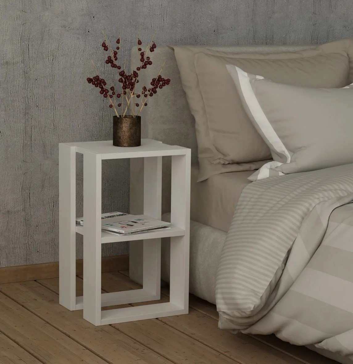 Creați un dormitor senin și elegant cu noptiera cu 2 nivele