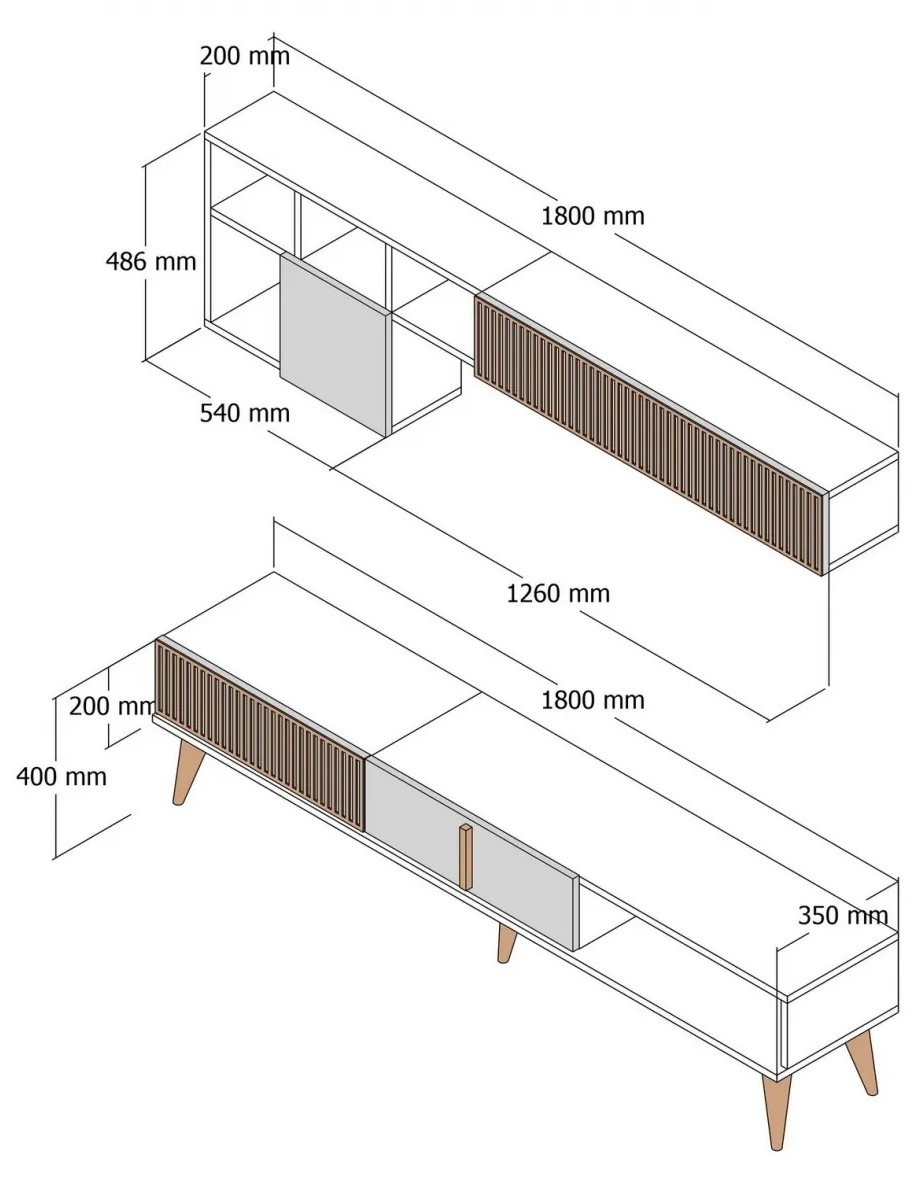 Lățimea de 180 cm asigură spațiu adecvat pentru televizor, iar înălțimea de 40 cm oferă unghiuri de vizualizare confortabile. Picioarele din plastic contribuie la stabilitate și facilitează curățarea datorită bazei ridicate.