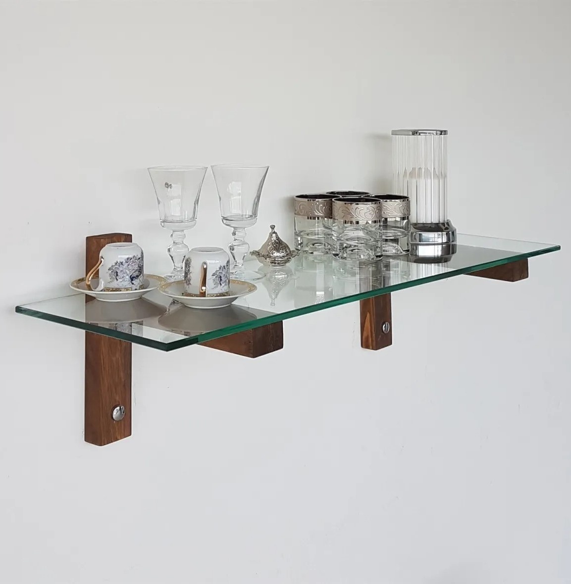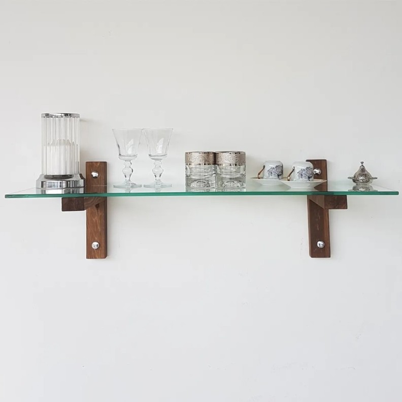Fabricat din sticlă și lemn masiv, raftul este construit să reziste. Grosimea sticlei de 8 mm asigură rezistență și robustete, permițând păstrarea în siguranță a obiectelor prețioase. Rama din lemn masiv oferă un aspect clasic și elegant, potrivit pentru orice decor.