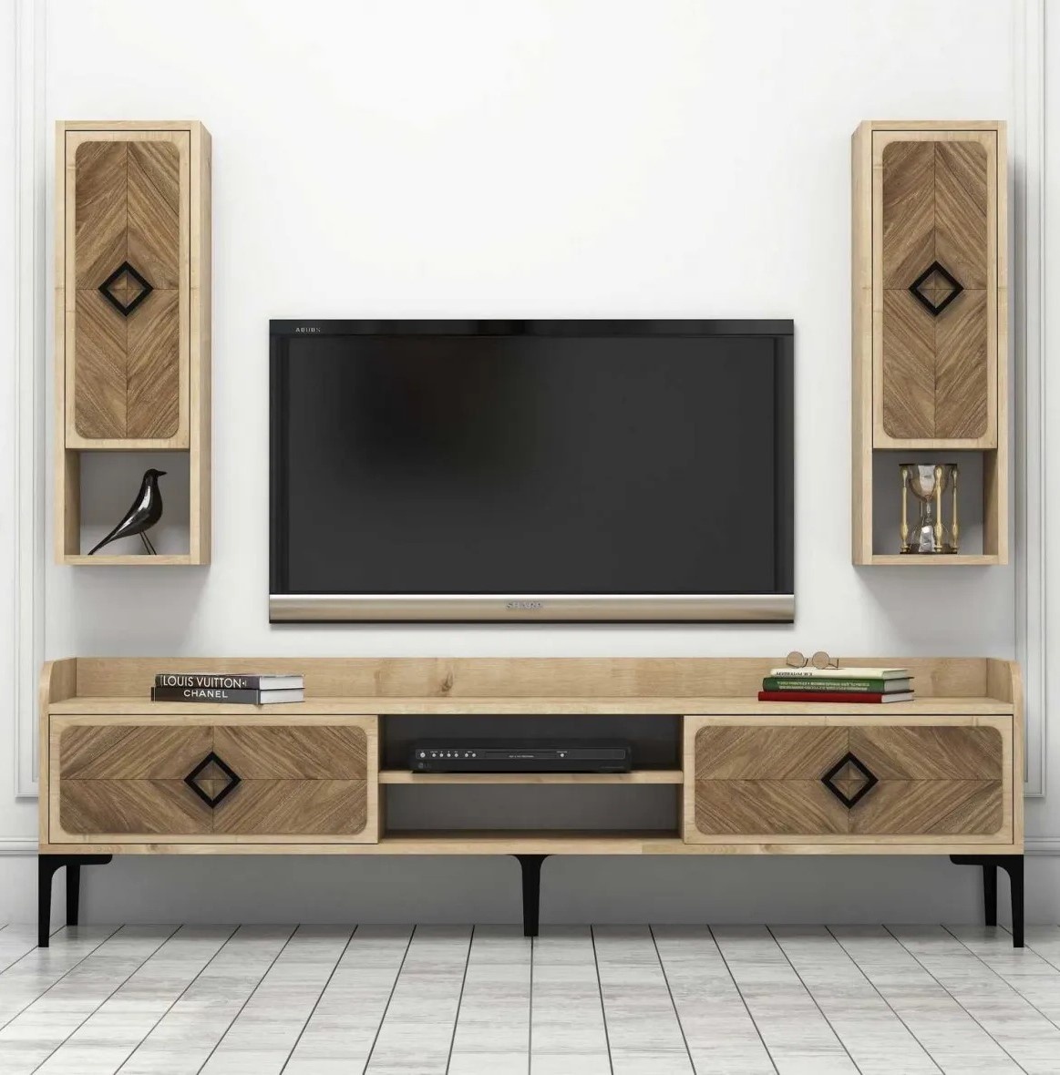Setcomod pentru TV, două dulapuri de perete, masuța de cafea