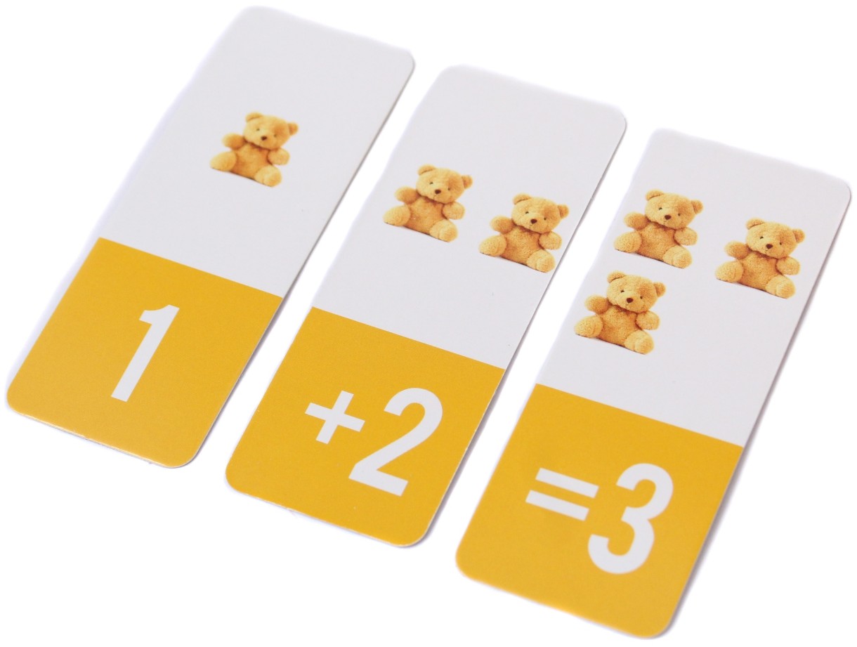 - 60 de carduri care trebuie identificate și grupate câte trei, pentru a recompune 20 de serii corecte. Fiecare serie reprezintă o operație de adunare.