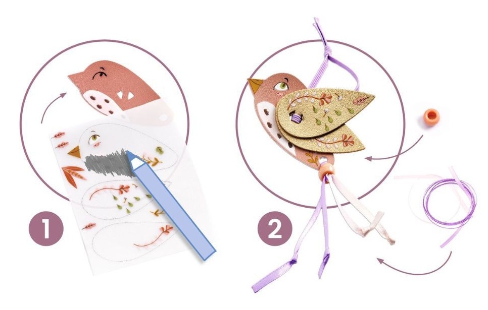 Setul creativ Djeco Miss Rosefinch permite copiilor să creeze propriul set de bijuterii elegante din piele sintetică. Cu ajutorul decalcomaniilor și elementelor decorative, copilul poate realiza un colier, o brățară, o broșă și un accesoriu pentru păr. Bijuteriile create pot fi păstrate pe un suport tip copac pentru bijuterii inclus în set. Activitatea dezvoltă creativitatea, atenția și motricitatea fină și este recomandată copiilor de la 6 ani.