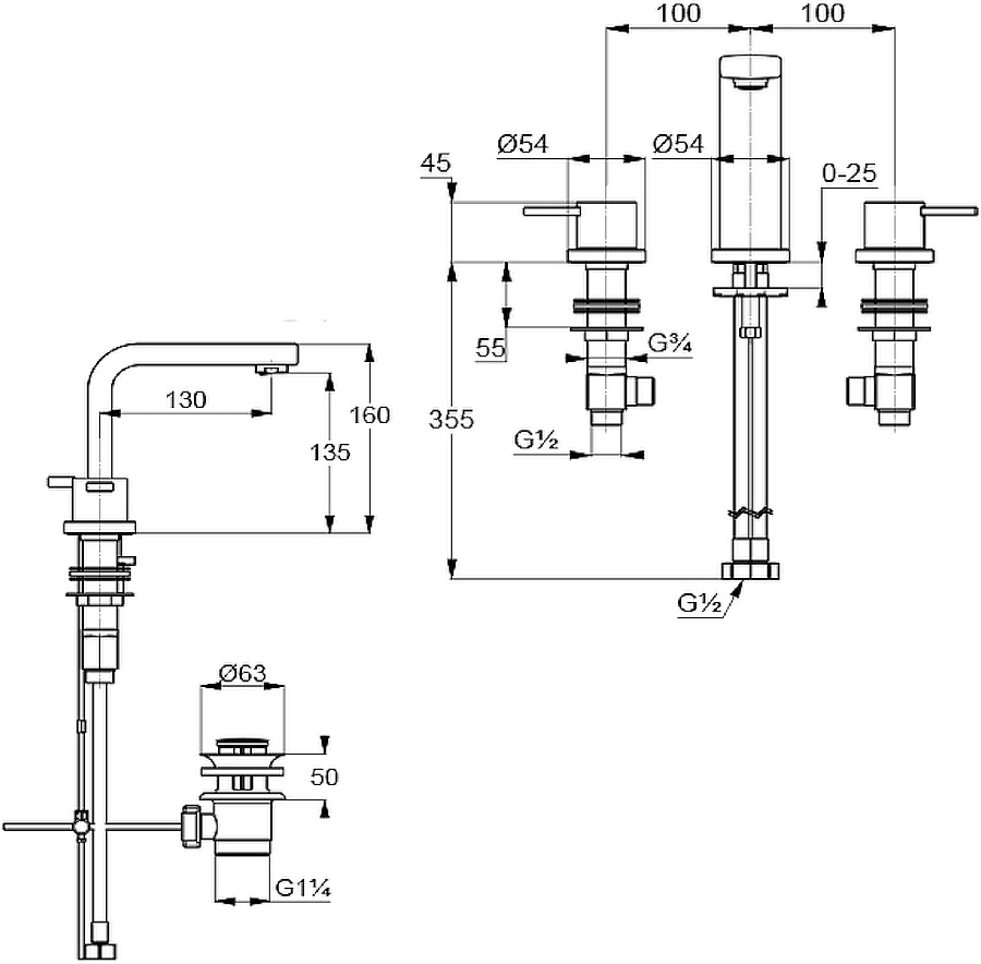 Baterie lavoar Kludi Zenta 3-Hole (383930575)