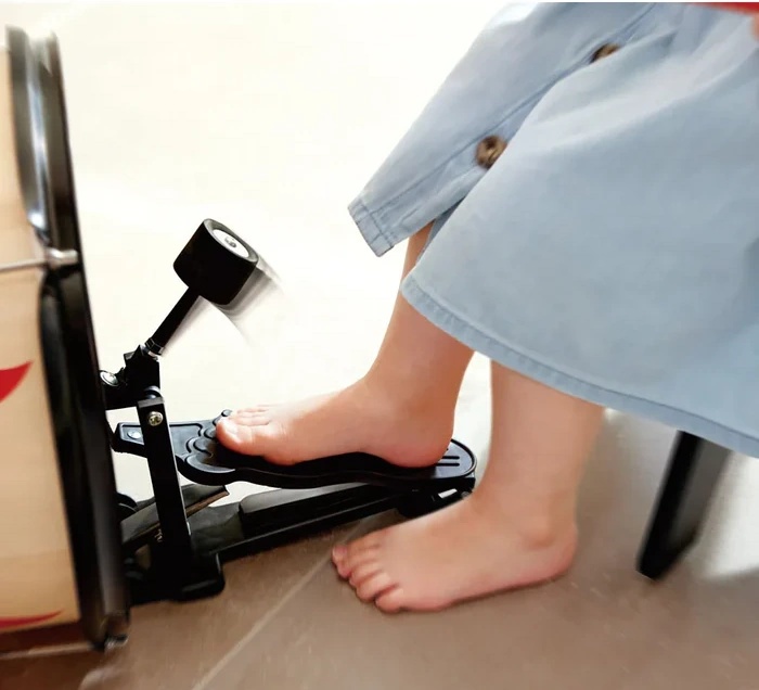 Pedală, scăunel și o pereche de bețe de tobe
