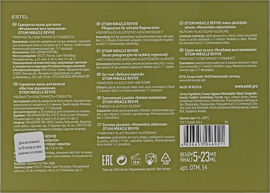 Ser pentru păr Estel Otium Miracle Revive 5x23ml