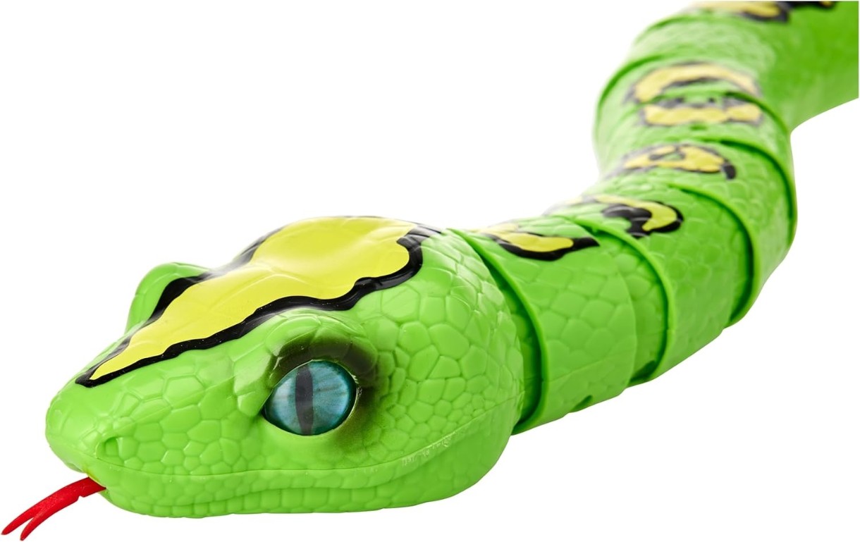 Robo Alive King Python – Șarpe Robotic Gigant de la ZURU! Atenție! Robo Alive King Python a sosit! Acest șarpe ultra-realist folosește tehnologie robotică inovatoare pentru a se târî cu mișcări terifiant de realiste! Ascunde-l sub masă și urmărește-ți familia cum sare de frică! Sau strecoară-l în ghiozdanul unui frate sau a unei surori – o surpriză perfectă la școală. Pentru trucuri și mai îndrăznețe – așează Regele Python sub perna cuiva și să înceapă teroarea! Măsurând 80 cm lungime, acest șarpe gigantic este conceput să aducă frică și râsete în orice seară în familie! Robo Alive King Python este cadoul perfect pentru iubitorii de farse și animale, mici și mari.