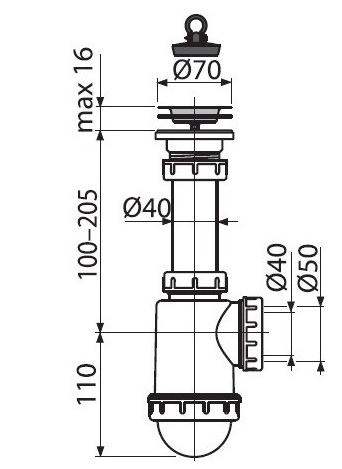 Sifon pentru lavoar AlcaPlast A441+A720 70" 50 (97907)