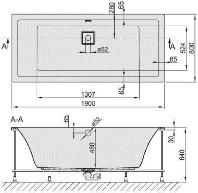 Cadă de baie Sanplast Space Line WP/Space 80x190 bi+SP set (610-100-0360-01)