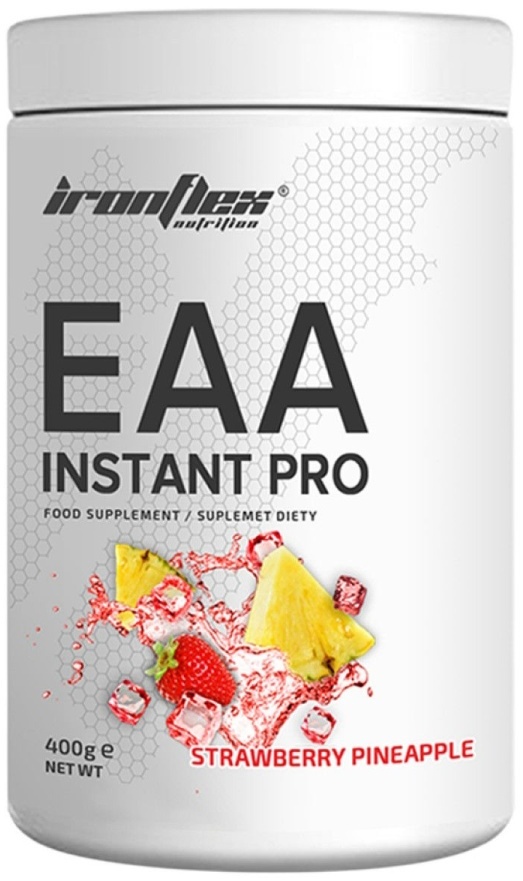 EAA Pro Instant 400g IronFlex este un supliment care conține toți cei 9 aminoacizi esențiali (EAA) pe care corpul nostru nu îi poate produce singur. EAA-urile sunt esențiale pentru a susține creșterea și repararea mușchilor, precum și sănătatea și bunăstarea generală.