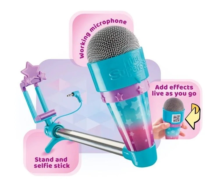 Cu un microfon ce inregistreaza audio, suport de sustinere, cititor de coduri QR si aplicatie exclusiva, Tube Superstar are tot ce aveti nevoie pentru a fi un star.
